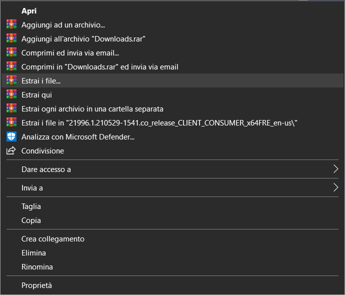 2) Then click “Extract files” if you have WinRAR (“Estrai i file” in my case)