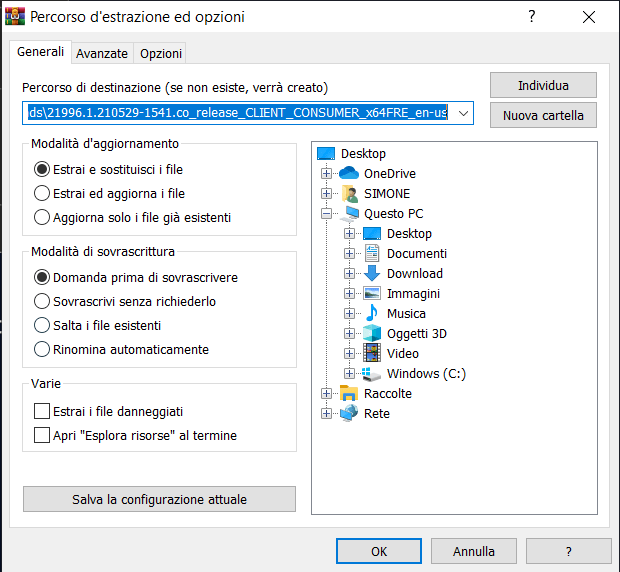 3) After clicking “extract files” a WinRAR window appears with some options, ignore them and then click OK